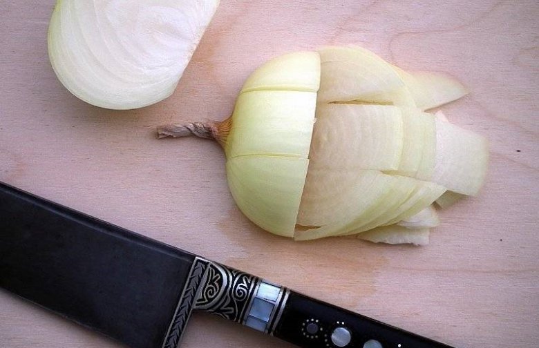 Также не крупно нашинковываем лук. От его количества также зависит сочность мантов, если лука не достаточно, начинка может получиться жесткая и сухая. Поэтому чаще всего лука в манты добавляют немного больше мяса.