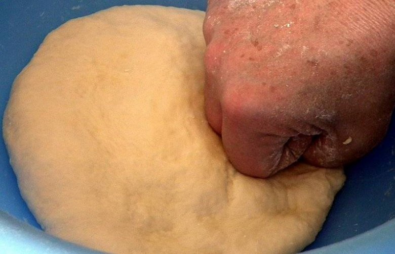 Месить тесто следует тщательно, до однородной, приятной на ощупь массы.