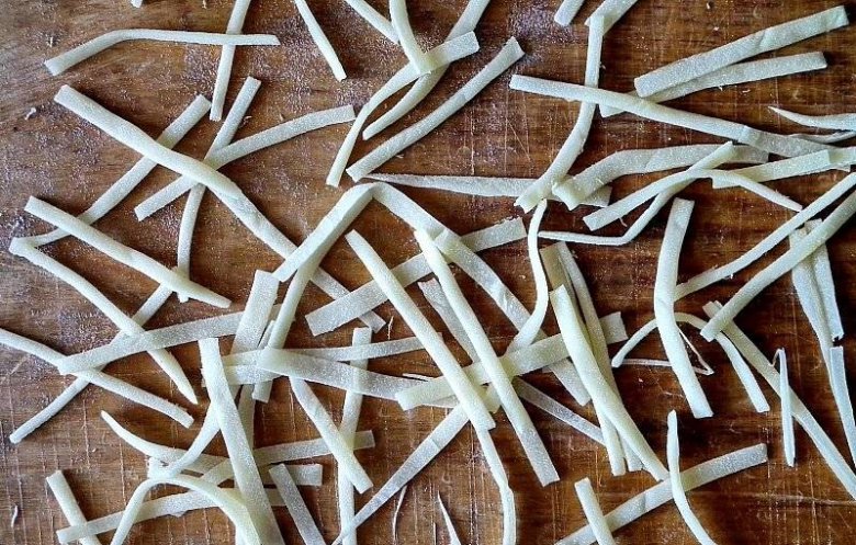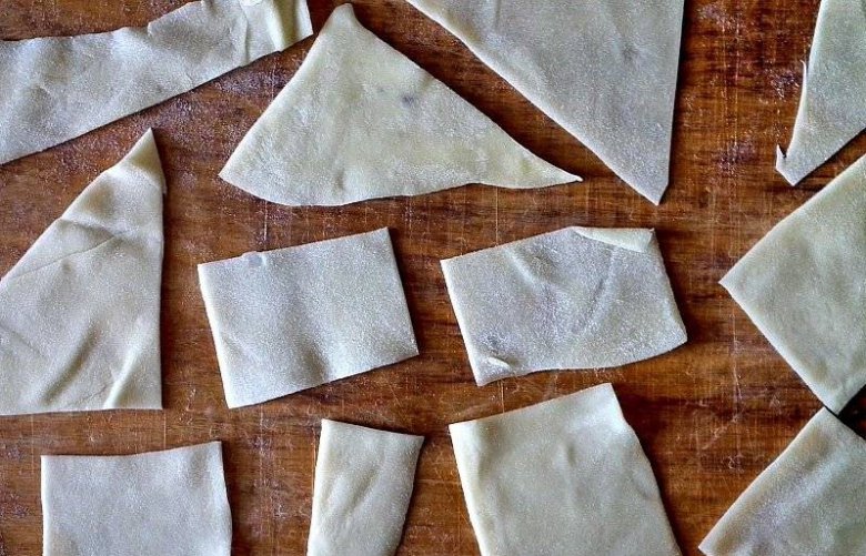 В процессе резки теста могут остаться куски теста - это не страшно. Их можно нарезать не небольшие кусочки или на тонкую лапшу и оставить сушиться.