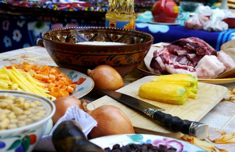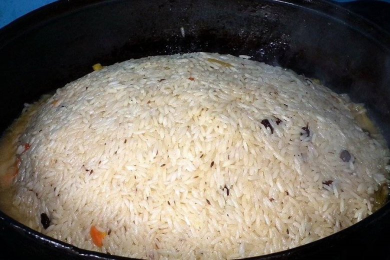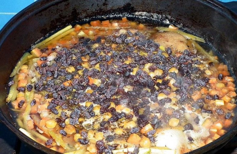 Хорошо готовить такой плов в большой и дружной компании. Пока кто-то чистит морковь, другие перебирают рис и изюм.