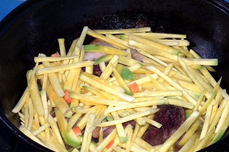 Приступаем к готовке. Чистый казан нагреваем достаточно сильно. Наливаем растительное масло и нагреваем его до легкого дымка.