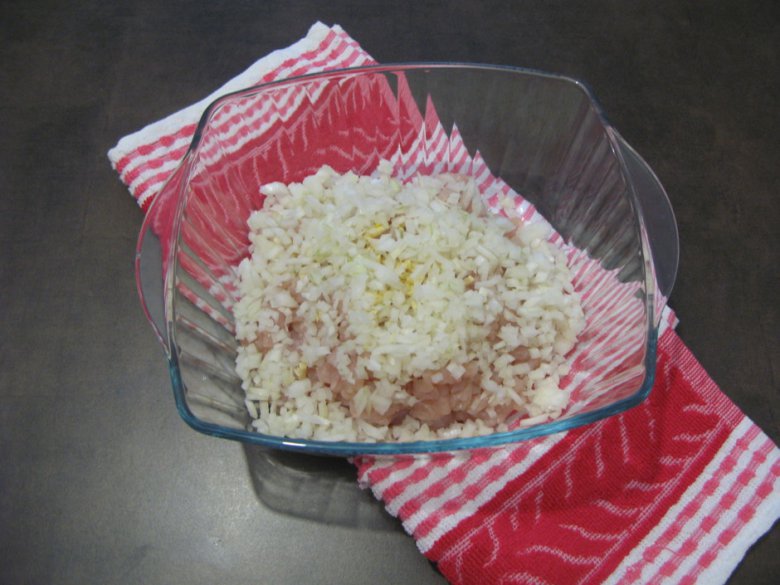 Когда фарш станет нужной консистенции, положить его обратно в емкость и убрать в холодильник на 40 минут.
