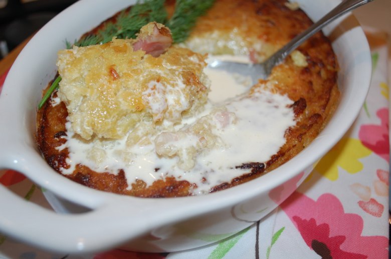 Запеканка из тертого картофеля с грудинкой — очень вкусное и сытное блюдо.