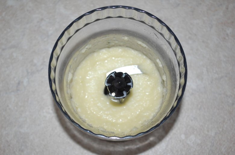 Куриную печень промыть, удалить пленки и разрезать пополам. В чашу блендера сложить почищенный и порезанный на крупные кусочки лук, влить яблочный уксус (можно винный) и оливковое масло. Измельчить до состояния пюре.