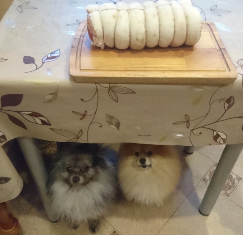 Под неусыпным контролем, свернул грудинку в рулет .... получилась вот такая гусеница.
