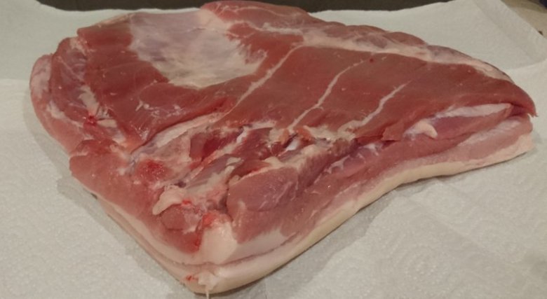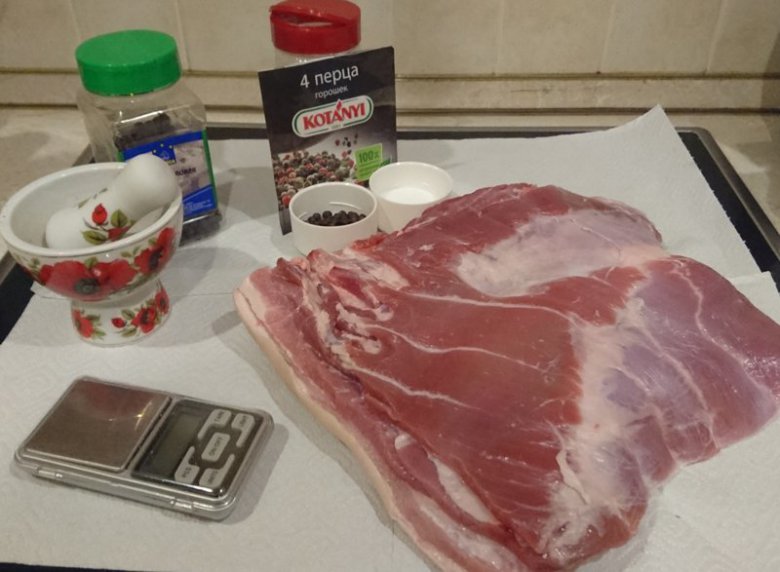 Задумал провести полевые испытания прибора. В мясном магазинчике купил не очень жирную (по виду) грудинку.