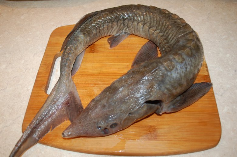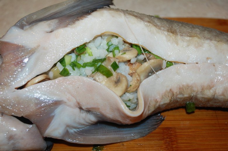 Подготовленной начинкой нафаршировать стерлядь.