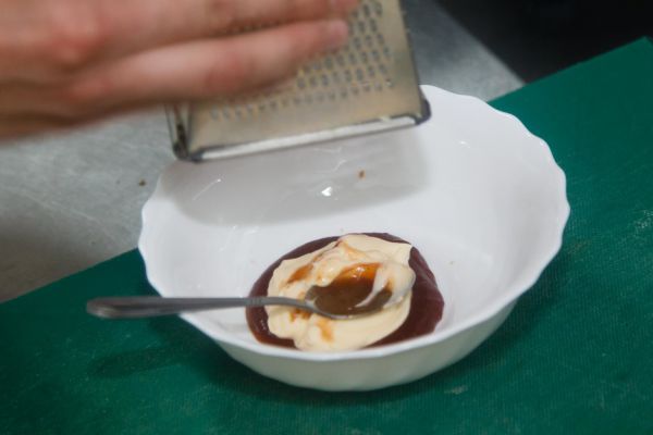 Сделать соус: смешать майонез и соус барбекю, добавить натертый чеснок.
