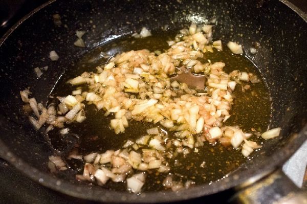 Тем временем приготовить простейший соус. Мелко нарезать оставшуюся луковицу, оправить в сковородку, где обжаривалось мясо, вместе с хорошим куском сливочного масла. Готовить до прозрачности лука.