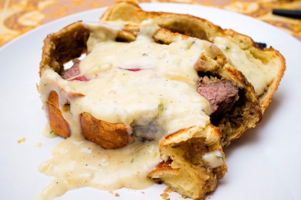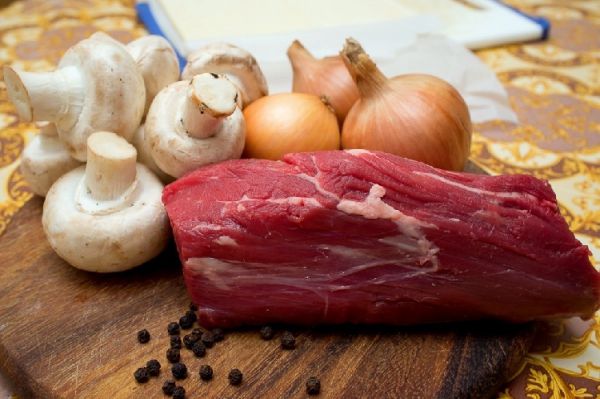 Отличное праздничное блюдо родом из Англии — мясо, запеченное с грибами и луком в тесте. Важную роль здесь играет именно мясо — это должна быть хорошая говяжья вырезка. Да, стоит она немало, но о результате вы не пожалеете — правильно приготовленное мясо имеет очень нежный вкус и розовый цвет на срезе.
