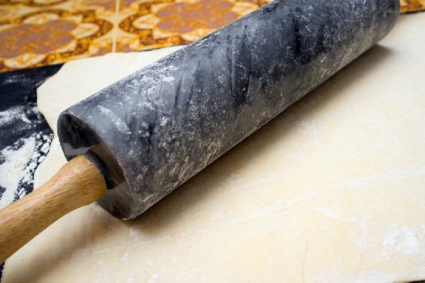 Присыпать мукой рабочую поверхность, раскатать тесто в пласт толщиной миллиметров пять.