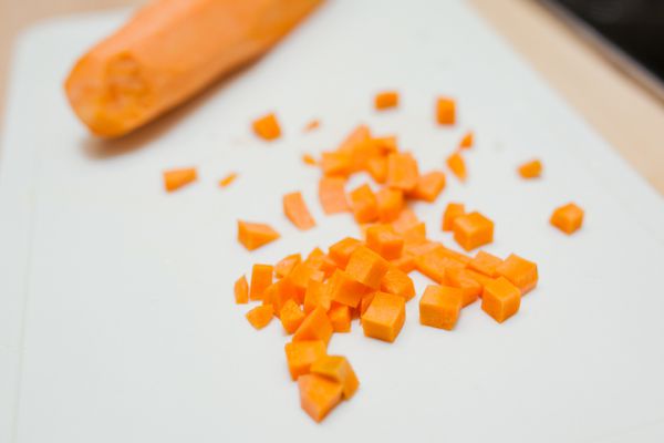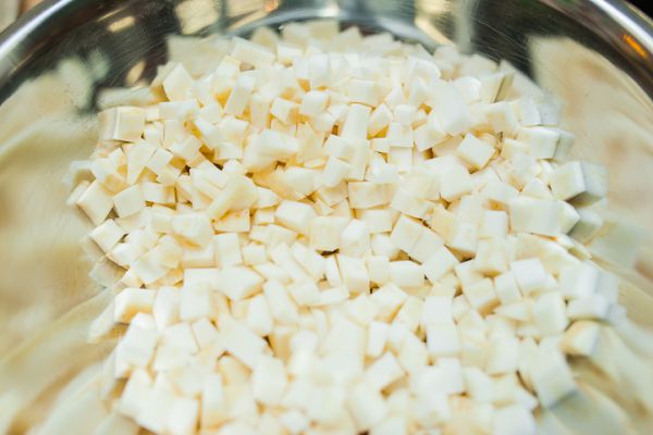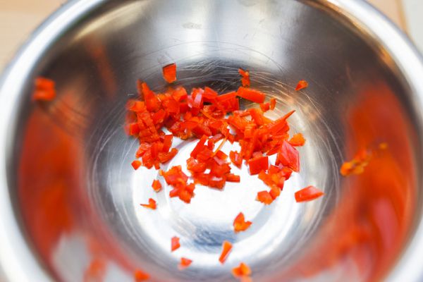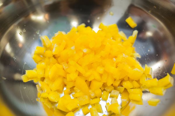 При использовании помидоров вместо томатной пасты, также нарезать их кубиком.