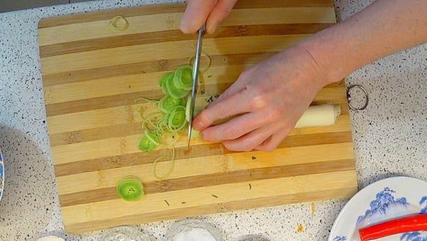Произвольное количество лука-порея нарезаем колечками или как хотите.