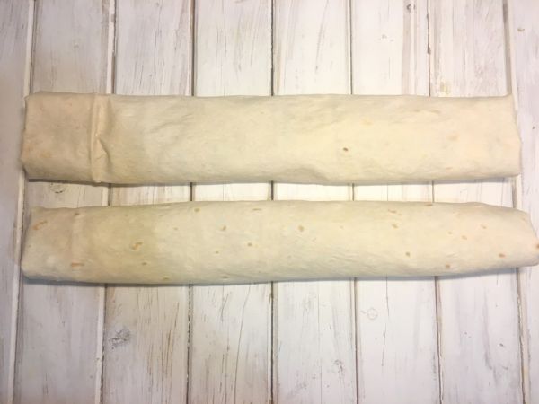 Лаваш свернуть рулетом, подвернув все края и положить в холодильник на 30-60 минут.