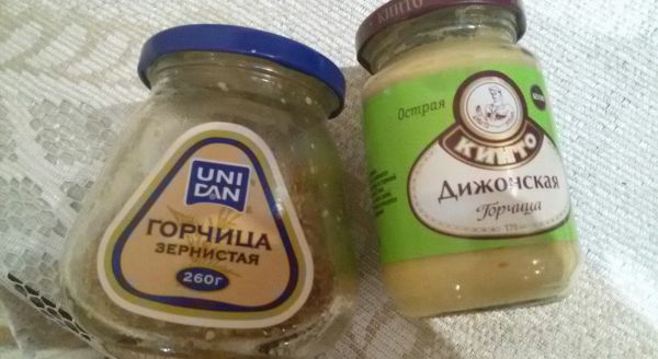 Зернистой добавил столовую ложку, дижонской добавил чайную ложку.