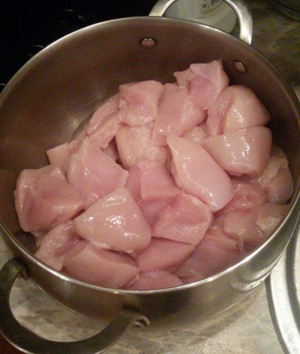 Первым делом грудки были промыты и с них были срезаны все жилки и подозрения на жир и пленки.