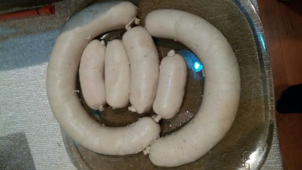 Скажу сразу, что если не использовать нитритную соль, то цвет у них будет серый. Не пугайтесь. Добавьте на стадии приготовления фарша сок свеклы. Будет красивее :-)