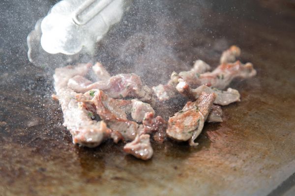 На гриле обжарить замаринованную говядину в течение 30-40 секунд. Говяжья вырезка готовится очень быстро.