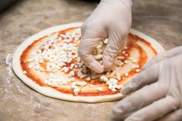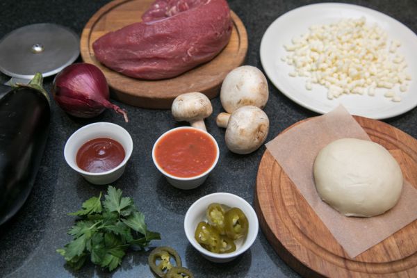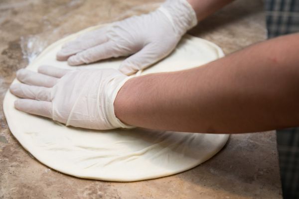 Приготовить основу для пиццы Барбекю. Раскатать тесто.