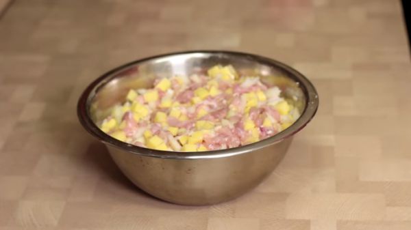Посолить, поперчить и все хорошо перемешать. Начинка готова.