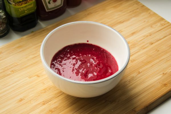 В зависимости от эстетических пожеланий, соус можно пропустить через блендер. Так будет еще больше ассоциаций с кровью врагов, которую викинги проливают на английских берегах. В общем-то все, соус готов, теперь нужно, чтобы он остыл, начнем заниматься мясом, тайминг опять идеален, пока жарится мясо — соус остынет.