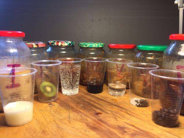 Распределил мясо на равные порции по 7 банкам и оставил еще часа на 4. Каждая банка пронумерована, для того чтоб не запутаться где и какой маринад. В дальнейшем точно так же пронумеровал и шампуры. Кроме меня в эксперименте участвовало еще 3 человека (ну не в одну же харю столько мяса), которые так же поделились своим мнением из которого в конце составим "Общий топ-3".