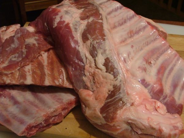 Ребра бывают 2х видов: со спины – от корейки, и с бока – от грудинки. Ребра со спины стоят дороже, так как вид у них более презентабельный, да и кушать их, не заляпавшись, проще. Но я люблю ребра от грудинки, ведь в них больше хрящиков и прожилок, да и вид у них более людоедский, как я люблю.