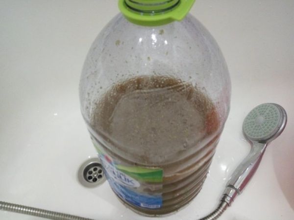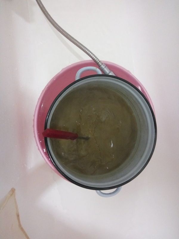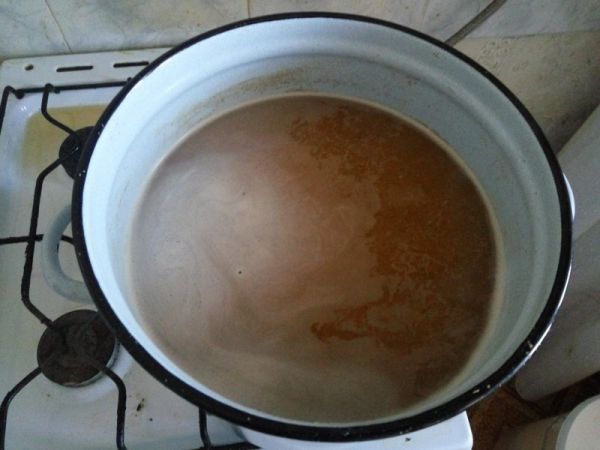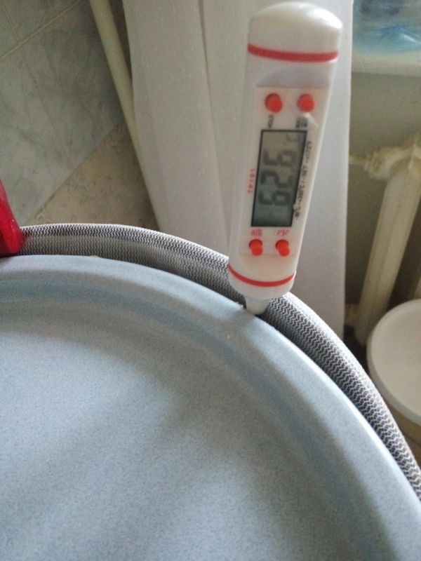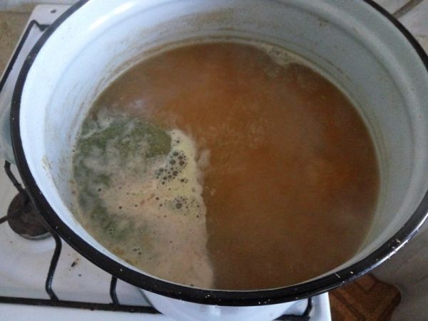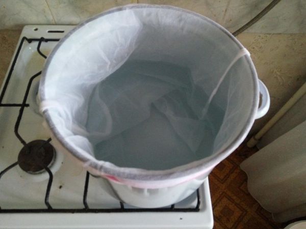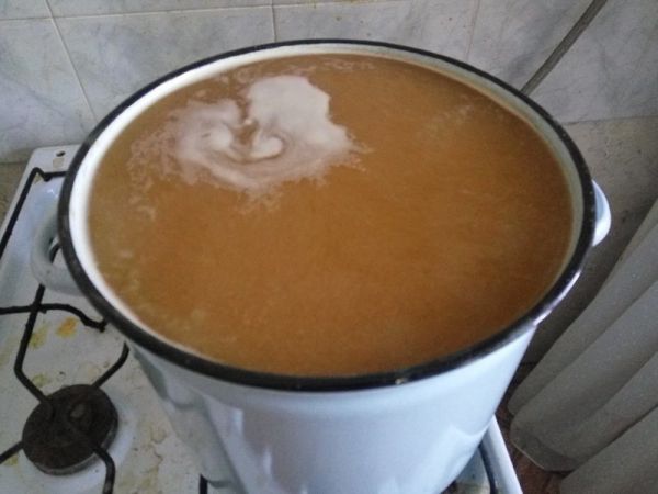 После того, как пиво «сварилось», нужно быстро его охладить. При небольших объемах, просто поставьте в таз с холодной водой, подменяя ее постоянно (я включаю душ и кладу лейку в таз с водой). С момента охлаждения сусла всё, с чем оно будет контачить, должно быть стерильным! Если будете фильтровать через марлю - она должна быть стерильной, если просто переливать в баклаху через воронку – воронка тоже должна быть стерильной. Баклаха из магазина внутри стерильная, по крайней мере, я сусло вливал без дезинфекции баклахи. В качестве дезинфекции идеально подойдет 6% перекись водорода или 70% спирт. Поскольку недостатка в спирте у меня нет, я использую его. Если ничего из перечисленного нет, можно обойтись йодом. В емкость с водой вылить пару баночек йода и оставить на час всё, подлежащее дезинфекции.