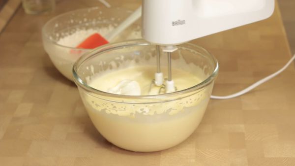 Взбить сливки до пышного состояния и перемешать с апельсиновой массой.