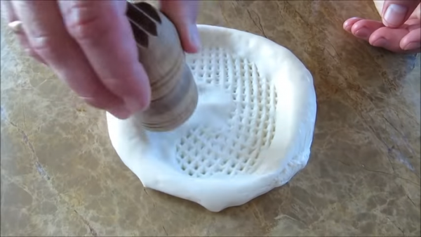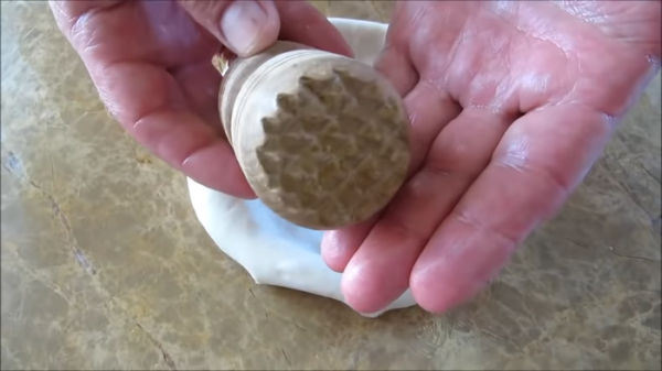 Для создания рисунка в центре лепешки я использую часть от деревянного молотка (для мяса). Ручка давно пересохла и потерялась)))