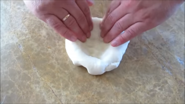 Формируем лепешки, не надо раскатывать, тесто очень податливое. От середины начинаем прижимать пальцами оставляя края лепешек пышными.