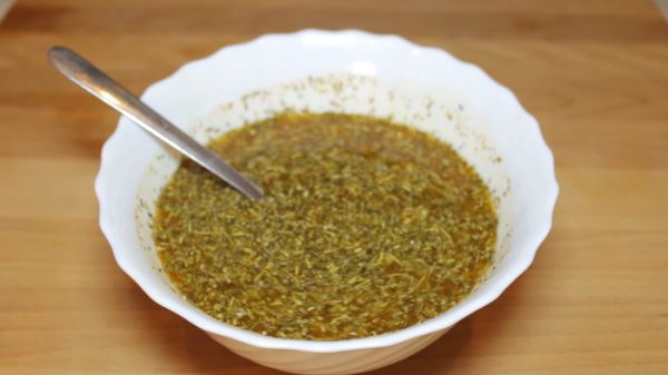 Возвращаемся к апельсиновому соку. Добавляем в него протертый имбирь с чесноком, мед, соевый соус, соль, сладкую паприку, карри, прованские травы. Перемешиваем и отставляем в сторону.