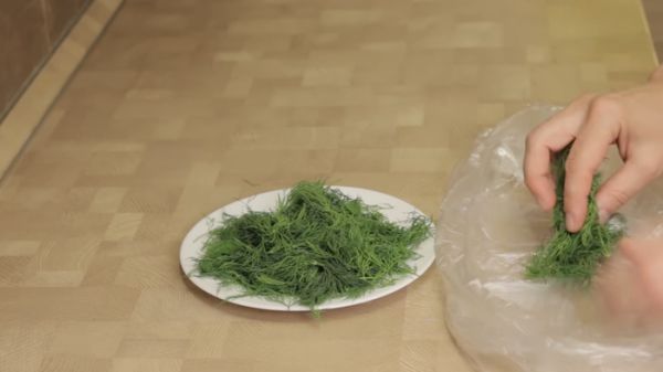 Открыть пакет и уложить порцию зелени, сколько обычно требуется.