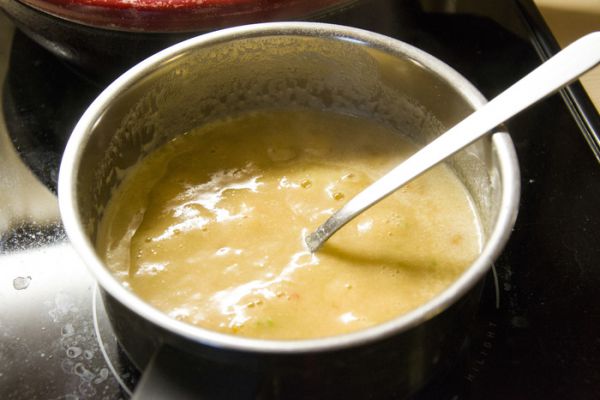 Добавляем чеснок и специи и прогреваем до вязкости. Тут хитрый момент, соус должен быть вполовину жиже того, что нам нужно, потому что при остывании он еще загустеет. Я бы мог конечно сказать, что ничего сложного, но буду честным, необходима практика, вы тренируйтесь на маленьких порциях и со временем набьете руку, потом сможете фигачить всякие бешамели и манную кашу без комочков.
