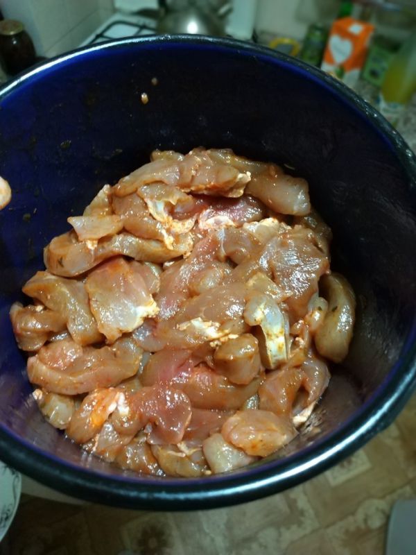 Приправы: на ваш вкус, тупо даже красный перец подойдет, на одной из фоток справа сфоткан маринад, что я использовал, дабы не было это рекламой, не указываю его, но советую. Какое количество добавлять, тоже не принципиально, со временем сами для себя подберете оптимум.