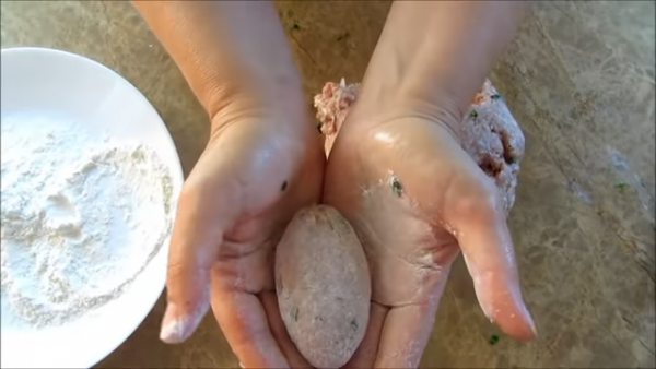 Формируем фрикадельки, слегка обваливаем в муке. У меня получилось 10 шт.