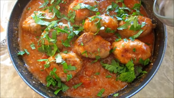 Никто не устоит от таких замечательных шашлычных фрикаделек! Рецепт проверен на семье), все очень довольны! Ароматные фрикадельки всего за полчаса, классно! На гарнир подойдет рис, гречка или просто отваренный картофель. Мясные соки, лук, помидоры, соль и молотый чили, больше в соус ничего не добавляйте! Остроту соуса регулируйте на свой вкус. Приятного всем аппетита! Приготовить за полчаса реально, если "руки чистые" и есть хочется)))