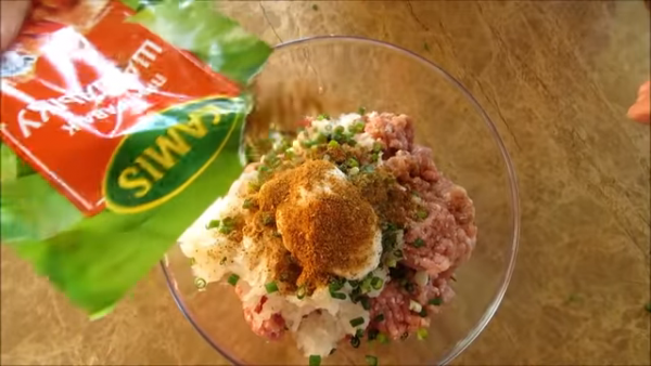 Начнем с приготовления фрикаделек. Главное взять свежий фарш и ваши любимую приправу к шашлыку.