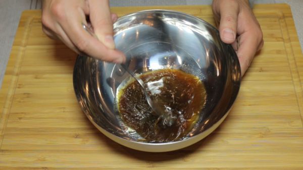 Приготовления соуса начинается с загустителя. Разводим в 50 мл. воды 1 ч.л. кукурузного крахмала. В глубокой ёмкости смешиваем 3 ст.л. соевого соуса, 1 ст.л. устричного соуса, 1 ст.л. кунжутного масла, 1 ст.л. рисового вина, немного свежемолотого перца и приготовленный ранее загуститель. Перемешиваем.