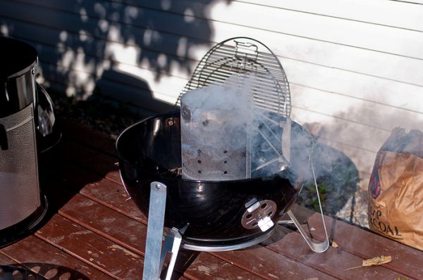 Сохла она 5 часов, по прошествии которых я насыпал в стакан-стартер на 2/3 углей и зажег их при помощи скомканной газеты, подсунутой под стартер и подожженной.
