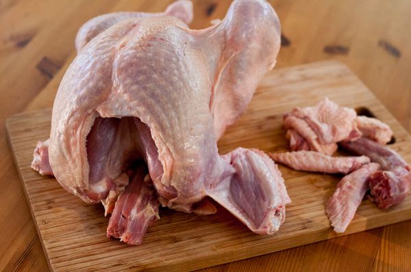 И вот я принес домой индюка на 8 без малого кг. Отрезал от него шею длинную, пальцы крыльев и излишки кожи из под шеи.