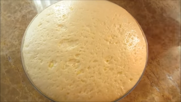 Постепенно добавляем муку и замешиваем мягкое тесто. Тесто получается отличным, убираем его под пленку пока не увеличится вдвое.