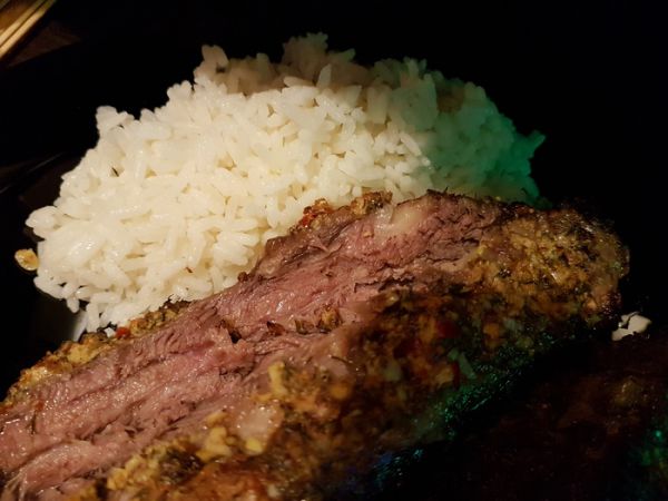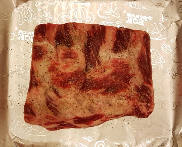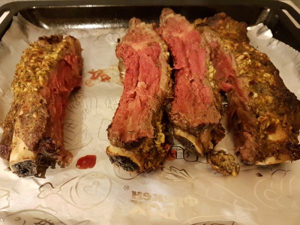 Но я подержал ещё 15 минут и довёл до Medium - Medium well. Интересно то, что после разреза я не потерял сок, стейк бы такого не простил, а ребра просто разрезал и доготовил, удобно. А вообще, в последнее время ребра сначала разделяю, потом готовлю, удобнее подавать, быстрее готовятся, советую