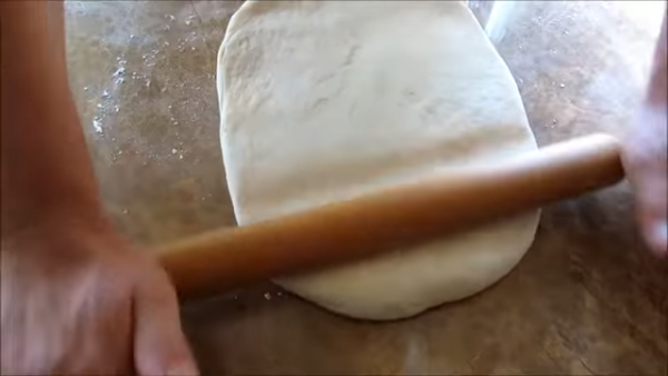 Слегка обомнем и раскатываем тесто в прямоугольник (стараемся)толщиной 1 см.