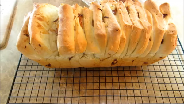 Каждый кусочек хорошо отламывается, прикольно, ножа не надо! Тесто мягкое, лук добавил легкую сладость. Не хлеб, а пирожное))) Очень вкусно, пеките на здоровье!