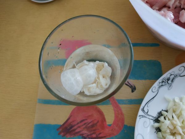 Чеснок - 2% по массе грудинки, в моем случае это 4 зубчика крупных (для себя в дальнейшем буду больше закладывать, люблю по ядренее, но коллеги на работе говорят, прям идеально)