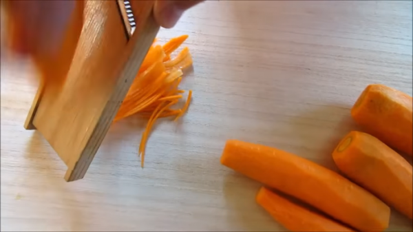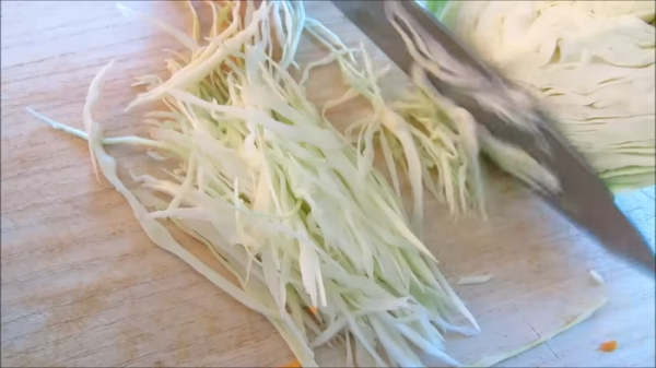 Капусту шинкуем (нарезаем) тоненько, что бы она была ажурная, красивая!