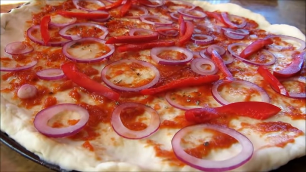 Никогда бы не поверила, что пиццу можно приготовить так быстро! Если бы не попался этот рецепт, все очень просто и легко! Тесто из обычных продуктов получается невероятно вкусным, просто фантастическим! Начинку можно добавлять вашу любимую. Перед тем, как начнете готовить, включите духовку, пусть разогревается!