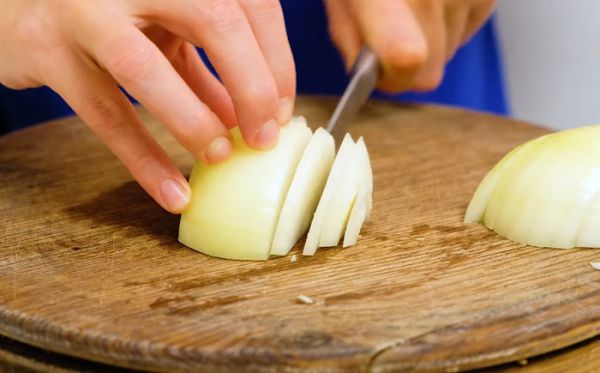 Лук нарезаем полукольцами. Морковь натираем на терке.