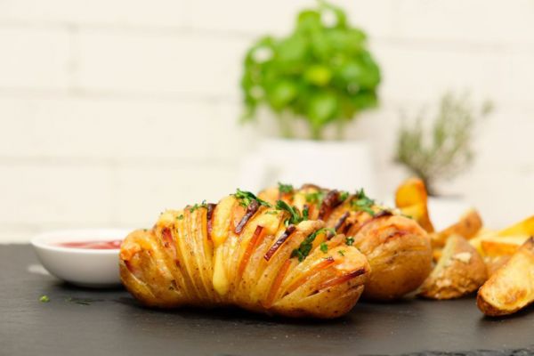 Второй рецепт – это, как мне кажется, полноценное и очень сытное основное блюдо: картошка-гармошка с сыром и беконом. Выглядит очень аппетитно, по вкусу просто нереально, а чего же еще ожидать от картофеля с беконом и сыром – такое блюдо нельзя испортить!